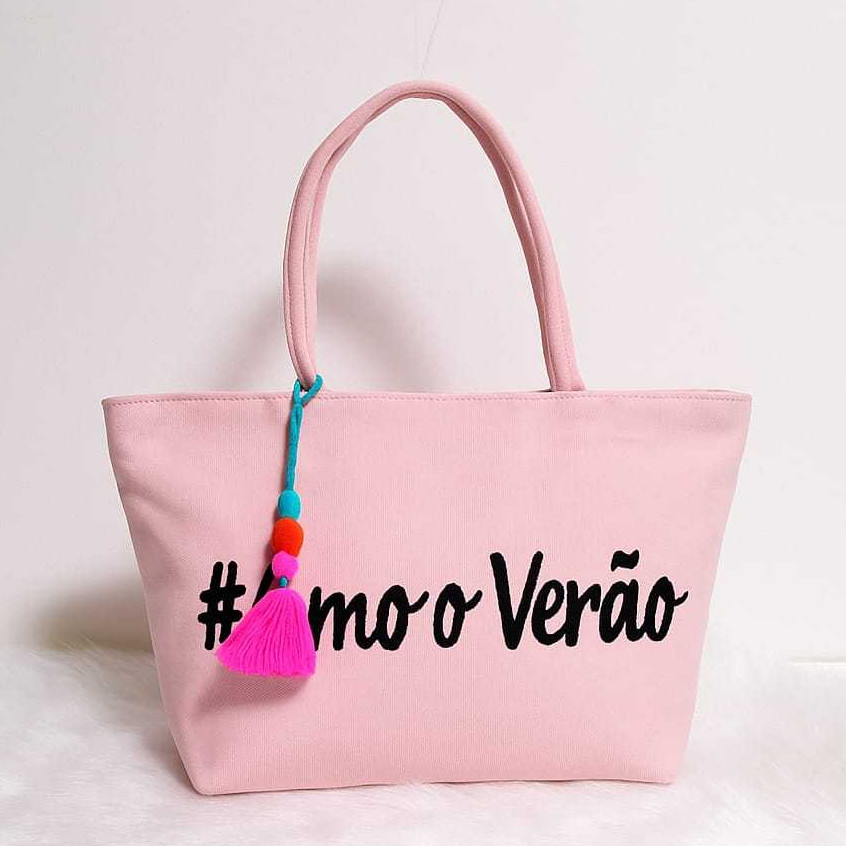 Bolsa Praia Piscina Modelo Sacola Tecido 9 Cores Feminina Amo o Verão / Summer Time