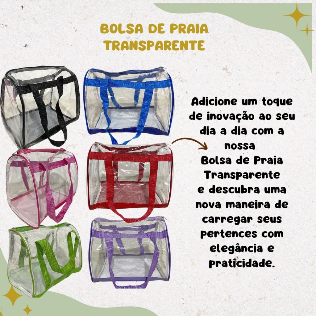 Bolsa Praia Piscina Transparente Passeio Verão Moda feminina