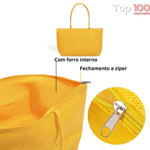 Bolsa Sacola De Praia De Palha Artesanal Com Zíper E Bolso Interno Para Personalizar Grande A001