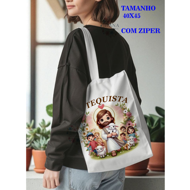 BOLSA SACOLA Ecobag feminina,unissex CATEQUISTA Jesus bom pastor,crianças,ovelha,moda cristã,católica,casual,verão