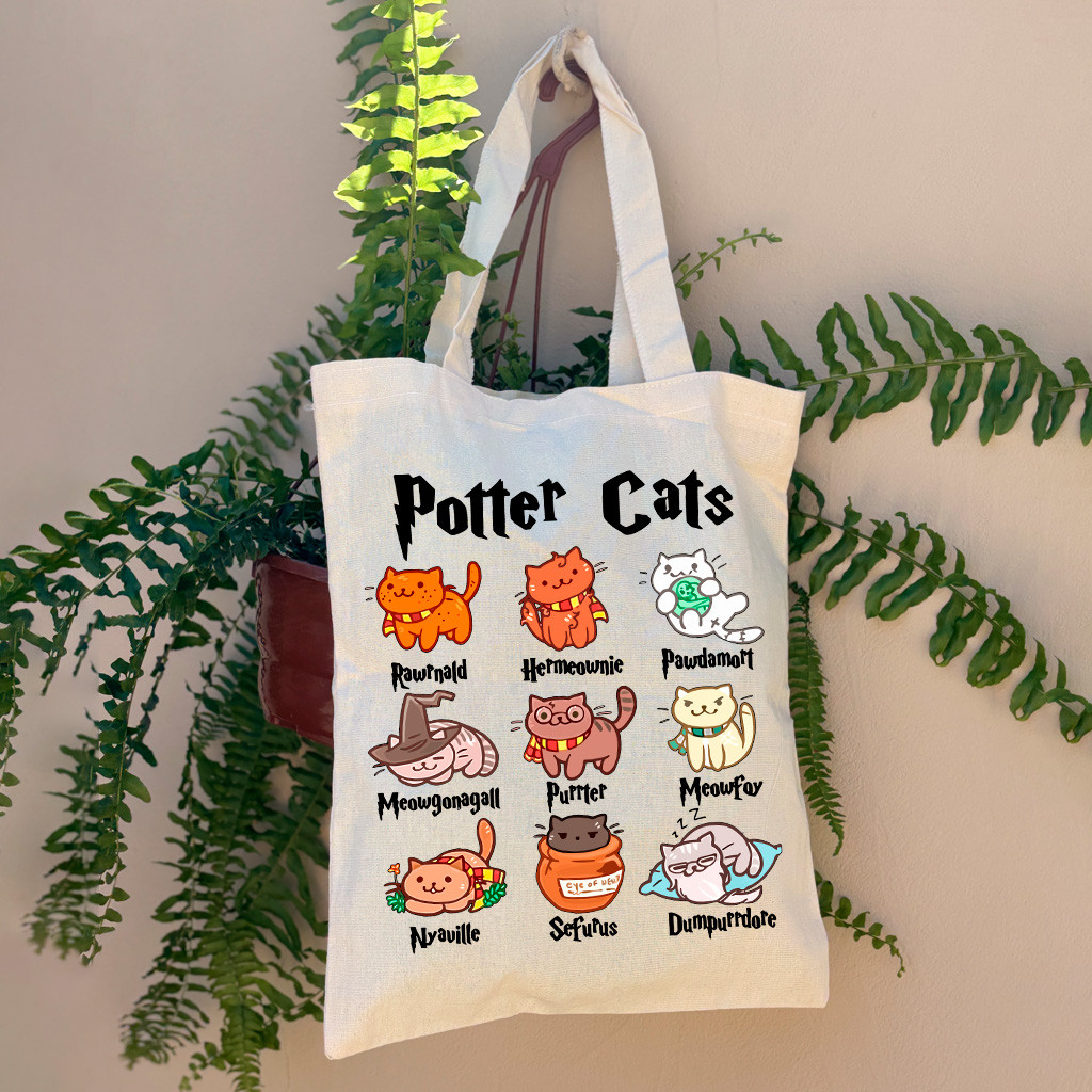 Bolsa Sacola Potter Cats Harry Potter Cat Gatos Ecobag 100% Algodão Cru Aesthetic Envio Imediato