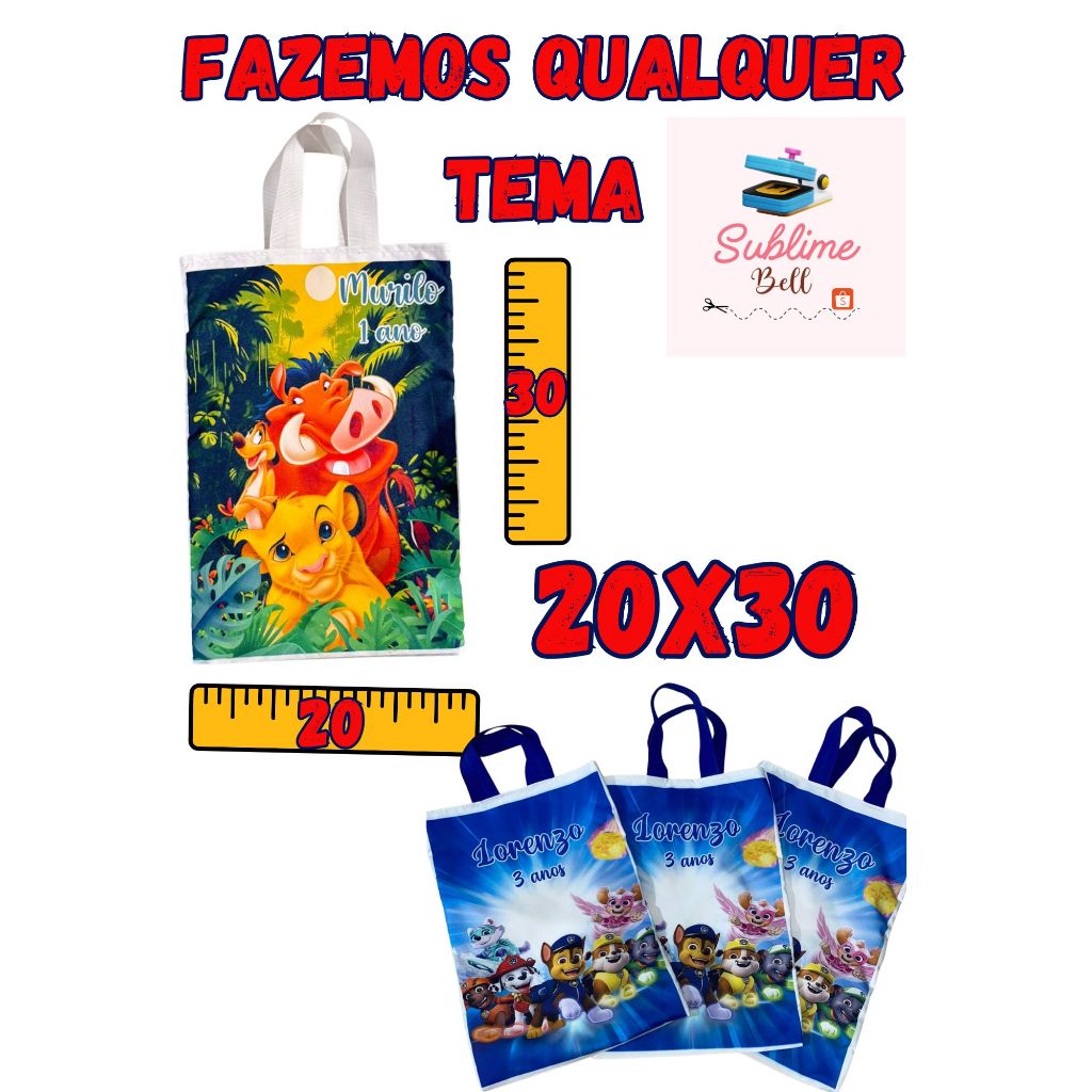 | Bolsa Sacolinha Ecobag Personalizado qualquer tema 20x30 este produto | R$ 64,00 | — | 4.9/5 | 228 |