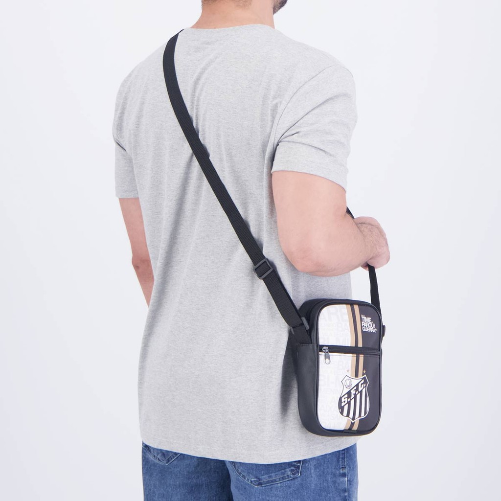 Dimensões aproximadas (A x L): 22 x 18 cmAlças: Uma ajustável para os ombrosCompartimento: Um principal amploBolsos: Um dianteiro, com zíperComposição: 100% PVCAbertura/fechamento: ZíperCor predominante: PretaPeso aproximado: 180 gClube: SantosGênero: UnissexOrigem: NacionalTamanho único