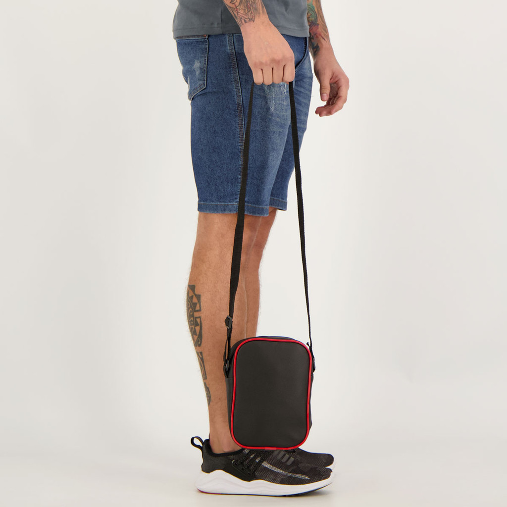 Dimensões aproximadas (A x L): 22 x 18 cmAlças: Uma ajustável para os ombrosCompartimento: Um principal amploBolsos: Um dianteiro, com zíperComposição: 100% PVCAbertura/fechamento: ZíperCor predominante: PretaPeso aproximado: 160 gClube: São PauloGênero: UnissexOrigem: NacionalTamanho único