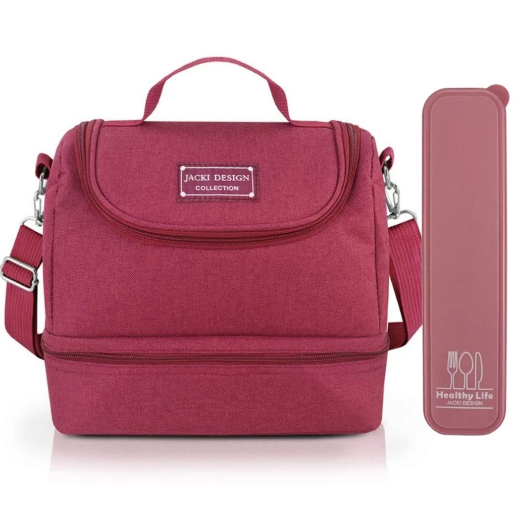 A nova coleção CONCEPT, foi criada pensando em oferecer mais praticidade e estilo para a mulher moderna! A bolsa térmica com 2 compartimentos da Jacki Design é feita multicamadas e folha de alumínio para manter seu alimento fresco e bem conservado. Possui 2 compartimentos, fecho de zíper e alça lateral removível. Conheça a linha completa da coleção CONCEPT. CUIDADOS GERAIS: Limpe a bolsa térmica com um pano úmido. Caso necessário, use sabão neutro ou álcool para higienizar o local. Deixe secar na sombra. Características do Produto - Possui folha de Alumínio Multicamada ( Maior conservação térmica ) - 2 Compartimentos ( Melhor separação dos alimentos ). - Possui alça de mão e alça tiracolo. - Material resistente. - Design moderno. - Cores vivas Informações Técnicas Medidas aproximadas: Comprimento: 23cm x Largura: 14cm x Altura: 20cm Profundidade parte inferior: 8 cm Material: Microfibra + Folha de Alumínio Peso: 230g ------------------------------------------------------------------------------------- O Porta Talheres da Jacki Design é um item essencial para transportar com higiene e segurança seus talheres. Feita de material Polipropileno, ele é compacto e fácil de limpar. Medidas: Comprimento: 25cm x Largura: 6cm x Altura: 3cm *Acessórios são meramente ilustrativos - NÃO ACOMPANHA TALHERES*