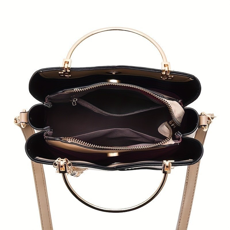 Bolsa Tote Colorblock Simples Feminina de Ombro Clássica Elegante Moderna com Pingente de Borla Vip Top