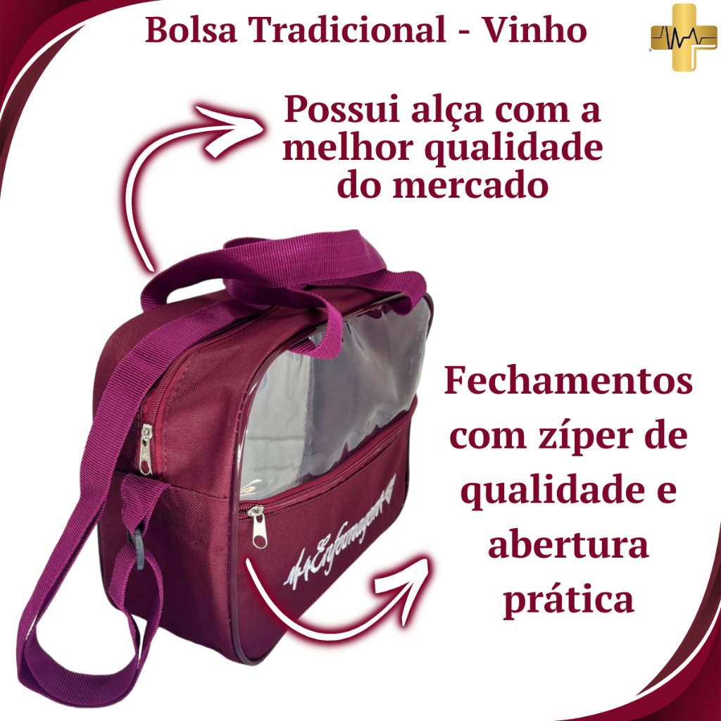 🩺 Bolsa Tradicional para Enfermagem Bordada – Modelo Profissional Ideal para estudantes e profissionais da área da saúde, essa bolsa une praticidade, elegância e organização no seu dia a dia. Características: Bordado com a palavra “Enfermagem” e símbolo da saúde Material resistente e fácil de limpar Parte frontal transparente para visualização rápida dos itens Compartimentos internos que facilitam a organização dos instrumentos Alça de mão e alça tiracolo ajustável para maior conforto Medidas aproximadas: 30cm (comprimento) x 10cm (largura) x 20cm (altura) 🎯 Indicação de uso: Perfeita para acadêmicos, técnicos e enfermeiros(as) que precisam de mobilidade com estilo e funcionalidade. 📦 Produto novo e pronto para envio! 🎨 Disponível em diversas cores — escolha a que mais combina com você!