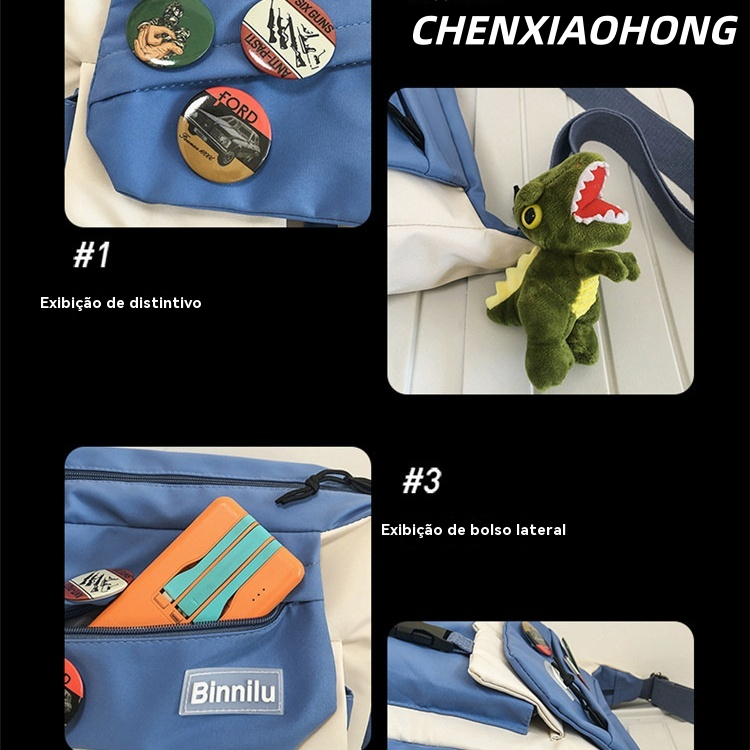 Tamanho: 31*12*25cm Material do Forro: Poliéster Comporta papel A4: Não Cores: Preto, Amarelo e Branco, Azul e Branco, Preto e Branco Estrutura Interna: Bolso para celular, bolso para documento de identidade Material: Nylon