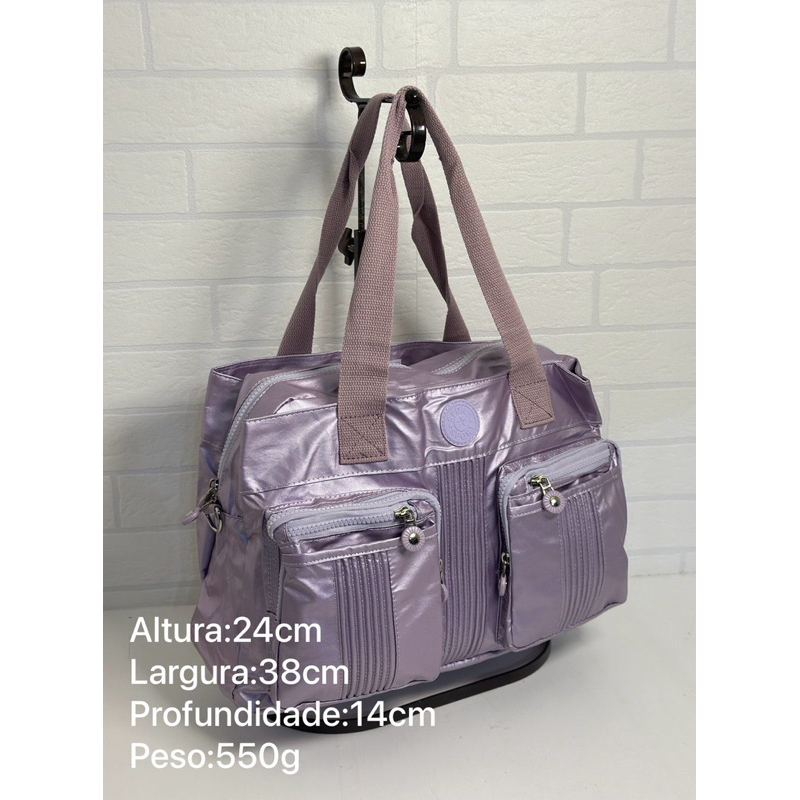 Bolsa confeccionada em poliamida, com detalhes emborracho na frente,. Tem alças duplas de ombro, com faixa prensada. Seu foro é em material têxtil estampado com bolso, fechamento em zíper, com mais dois compartimento pequeno para objetos, sendo um bolsinho interno e outro na parte traseira. Acompanha chaveiro exclusivo de pelúcia, na cor da bolsa, juntamente com a alça transversal GRANDE. Não cabe NOTEBOOK grande, somente tamanho pequeno/ tablet até 14 polegadas.