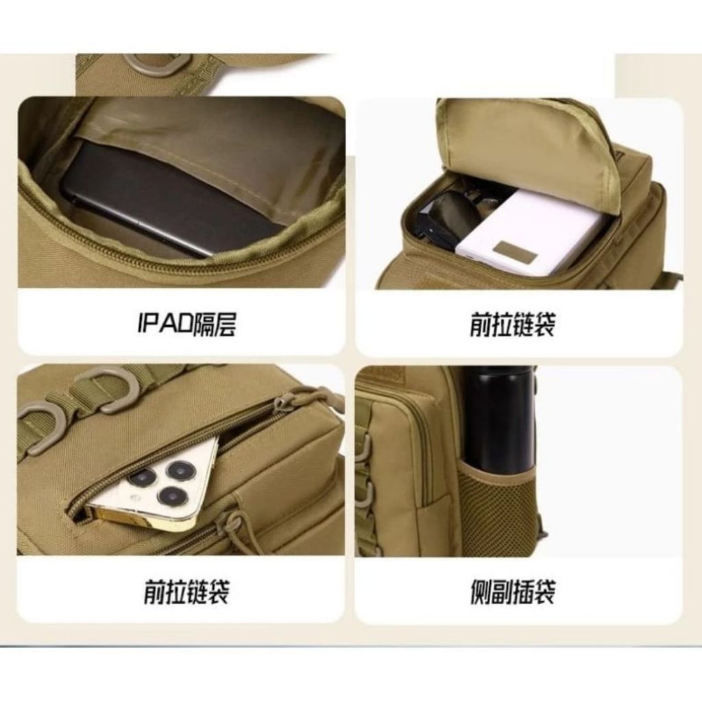 Tamanho: Compacta, ideal para transporte diário e atividades ao ar livre Design: Alça transversal ajustável e acolchoada para maior conforto Várias bolsas e compartimentos para organização eficiente Correias MOLLE (Modular Lightweight Load-carrying Equipment) para fixação de equipamentos adicionais Detalhes Adicionais: Patch removível com a bandeira dos Estados Unidos em preto e branco na parte frontal Fechos de zíper duráveis Sistema de liberação rápida na alça Uso Recomendado: Perfeita para caminhadas, camping, uso tático e transporte diário de itens essenciais. A mochila tática transversal caqui combina funcionalidade e estilo robusto, oferecendo praticidade e resistência em qualquer situação Medidas Altura:30 cm Largura:17 cm Profundidade:8 cm