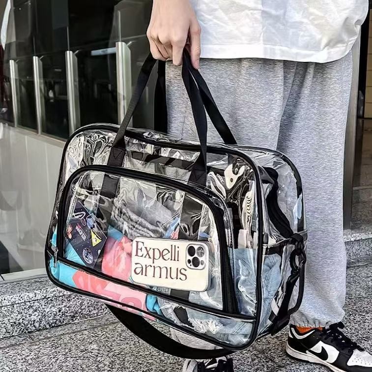 Bolsa Viagem Grande Transparente Feminina Masculino Medidas: - Largura:49 cm - Altura: 32 cm - Profundidade: 17 cm - Alça de ombro: 120cm Region of Origin:Mainland China