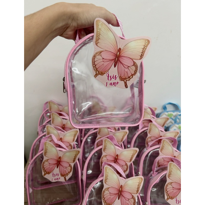 Bolsinha de mão LIZ transparente aplicação 3D 18x14 personalizada, qualquer tema! Jardim, borboleta