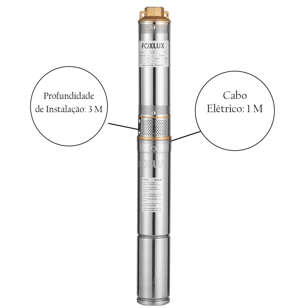 Bomba Caneta Submersa Foxlux 2CV 220V Alta Pressão para Poço, Cisterna e Água Limpa