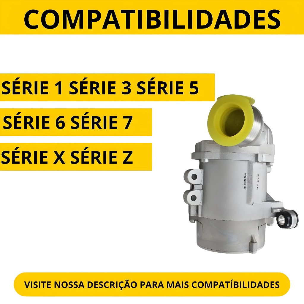 Bomba D'água Elétrica 125i 325 525i 630i 730li X3 Acessório para veículos peças de Carros e Caminhonetes. Vendemos produtos de alta qualidade, com a praticidade para seu dia a dia!!! Conteúdo desta compra: Conteúdo: Motor, Bombas, Bopmbas De Água. Modelo: BMW Compatível com os Seguintes Veículos: • Série 1 130i (E81,E87) - Fabricados em 2005 2006 2007 2008 2009 2010 2011 125i (E82,E88) - Fabricados em 2006 2007 2008 2009 2010 2011 2012 2013 128i (E82,E88) - Fabricados em 2006 2007 2008 2009 2010 2011 2012 2013 •Série 3 323i (E90,E91,E92,E93) - Fabricados em 2004 2005 2006 2007 2008 2009 2010 2011 325i (E90,E91,E92,E93) - Fabricados em 2004 2005 2006 2007 2008 2009 2010 2011 328i (E90,E91,E92,E93) - Fabricados em 2004 2005 2006 2007 2008 2009 2010 2011 330i (E90,E91,E92,E93) - Fabricados em 2004 2005 2006 2007 2008 2009 2010 2011 •Série 5 523i (E60,E61) - Fabricados em 2004 2005 2006 2007 2008 2009 525i (E60,E61) - Fabricados em 2004 2005 2006 2007 2008 2009 528i (E60,) - Fabricados em 2005 2006 2007 2008 2009 530i (E60,E61) -Fabricados em 2004 2005 2006 2007 2008 2009 •Série 6 630i (E63,E64) -Fabricados em 2004 2005 2006 2007 2008 2009 2010 •Série 7 730i (E65) - Fabricados em2004 2005 2006 2007 2008 730li (E66) - Fabricados em 2004 2005 2006 2007 2008 •Série X X1 (E84) -Fabricados em 2008 2009 2010 2011 X3 (E83) - Fabricados em 2006 2007 2008 2009 2010 X5 (E70) - Fabricados em 2006 2007 2008 2009 2010 •Série Z Z4 (E85,E86) - Fabricados em2004 2005 2006 2007 2008 Z4 (E89) -Fabricados em 2008 2009 2010 2011 Especificações Técnicas: • Material Do Corpo: Alumínio •Material Do Rotor: Alumínio •Inclui Junta: Não •Inclui Parafusos: Sim •Inclui Polia: Não •Inclui Caixa Traseira: Sim •Inclui Manual De Instalação: Sim Obs: Verifique se o modelo vendido neste anúncio é o mesmo compatível com seu veículo. O produto é enviado conforme as imagens do anúncio. A instalação deve ser realizada por um profissional qualificado!!! Se tiver alguma dúvida nos envie mensagem no campo '' Chat ''. Temos uma equipe especializada para ajudá-lo. Atenção: Preço Unitário PRODUTO A PRONTA-ENTREGA! EM000000