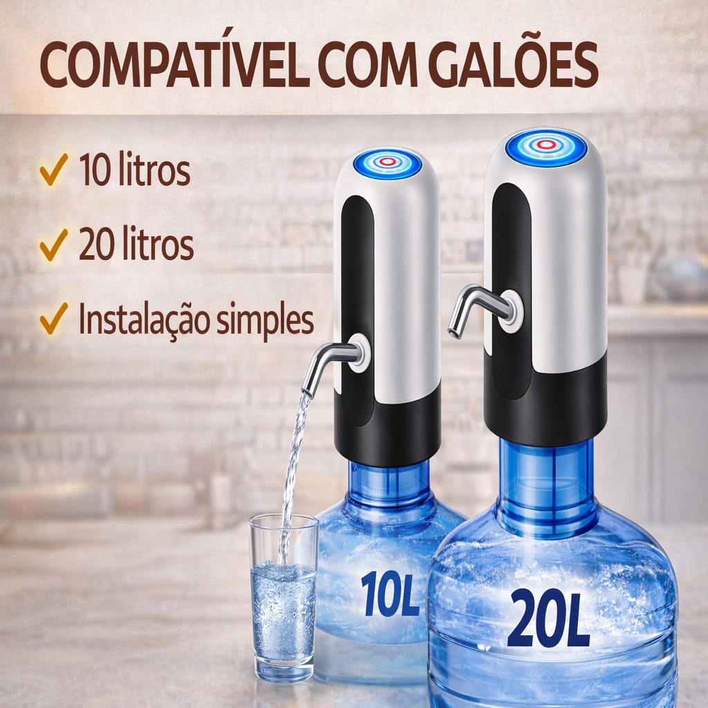 Bomba de Água Elétrica Automática USB-C para Galão 10L e 20L | Dispenser Recarregável
