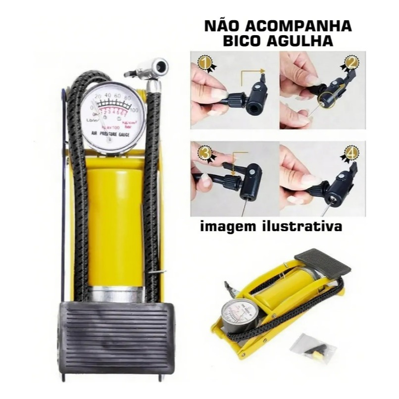 A cor do produto é enviada de forma aleatória conforme nosso estoque, podendo ser azul ou amarelo, ambas com a mesma qualidade. Bomba de Ar com Pedal de Alta Pressão: O Segredo para Facilidade e Eficiência Deseja uma solução eficaz para inflar pneus de motos, bicicletas e até balões, sem o incômodo do esforço excessivo? Apresentamos a nossa Bomba de Ar com Pedal de Alta Pressão, uma verdadeira revolução em praticidade e desempenho. Desperte a sua Facilidade de Uso: Com o nosso inovador sistema de pedal, inflar seus pneus torna-se uma tarefa rápida e sem esforço. Basta pressionar o pedal e sentir a potência que proporciona um enchimento rápido e eficaz. Adeus à exaustão causada pelo bombeamento manual! Leveza e Portabilidade: Diga adeus às bombas volumosas e pesadas que dificultam o transporte. Nossa Bomba de Ar é compacta, leve e fácil de transportar, permitindo que você a leve consigo em todas as suas aventuras sobre rodas. Nunca foi tão conveniente manter seus pneus inflados onde quer que vá. Multiusos Premium: Além de ser perfeita para pneus de motos e bicicletas, nossa Bomba de Ar também é ideal para inflar balões, colchões de ar e muito mais. Versátil e confiável, é o acessório indispensável para qualquer ocasião.