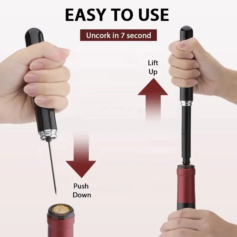 Bomba De Ar De Segurança Abridor De Garrafas De Vinho Com Cortador De Folhas Saca-Rolhas Pino De Aço Inoxidável Pressão