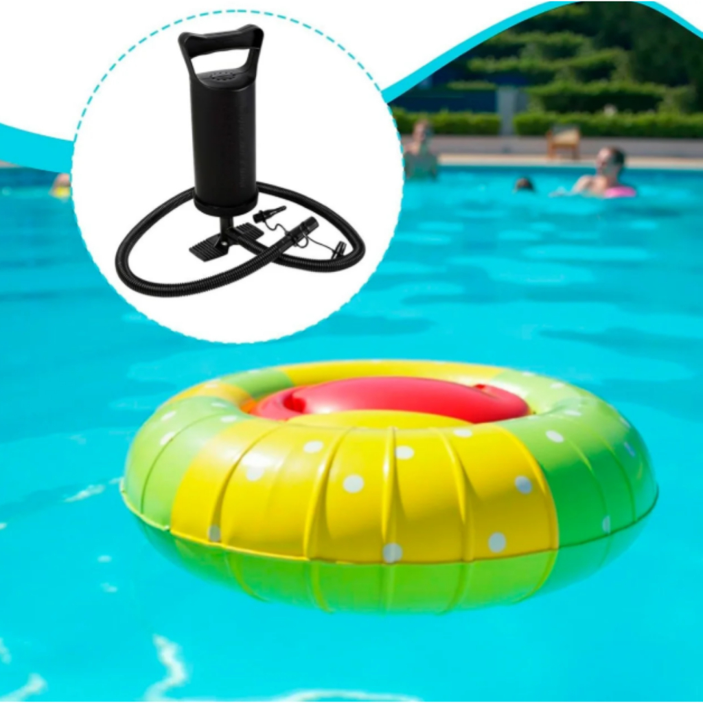Bomba de Ar Manual de Pé com 3 Bicos – Para Boias, Colchões e Piscinas Infláveis