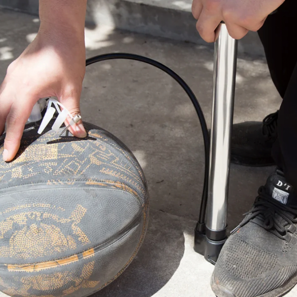 Bomba de Ar Metal Para Encher Pneu Bicicleta Bolas e Boia 30cm Portátil Forte Compacta Cor Prata
