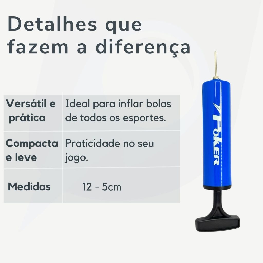 | Bomba De Ar Poker Portátil Bombinha Calibrar Encher Bola Futsal Vôl... este produto | R$ 22,90 | 8% | 4.9/5 | 11 |