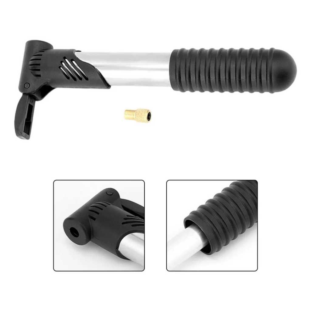 Bomba de ar manual possui corpo em PVC de cor prata. Conta com bico e empunhadura em PVC na cor preta. Indicada para inflar pneus, câmaras de ar e objetos infláveis. - 2 Estágios - 3 Adaptadores para bolas, pneus e infláveis - Economiza espaço no momento de guardar - Suporte para bicicleta 🌟 Destaques do Produto 🌟#2 - Compacta e Leve: A bomba de ar perfeita para ciclistas e aventureiros que precisam de praticidade e eficiência. - Material Resistente: Fabricada com materiais de alta qualidade, garantindo durabilidade e confiabilidade em todas as suas aventuras. - Versatilidade Incrível: Ideal para inflar pneus de bicicletas, bolas, piscinas, colchões e muito mais! 🔄 Detalhes da Variação 🔄 - Modelo: Bomba De Ar Encher Pneu Bicicleta Moto Bola Balão Piscina Forte Compacta e Leve.