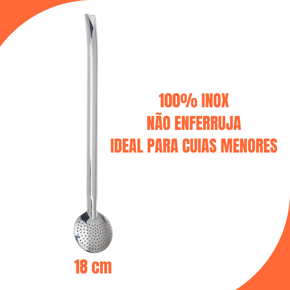 Bomba de Chimarrão em Aço Inox Lisa 18cm ou 21cm - Não Enferruja