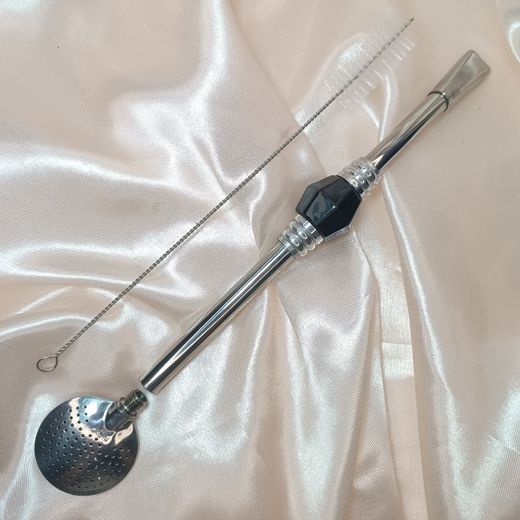 Bomba de Chimarrão Pedra C/Bocal C/Rosca Aço Inox - Acompanha Escovinha