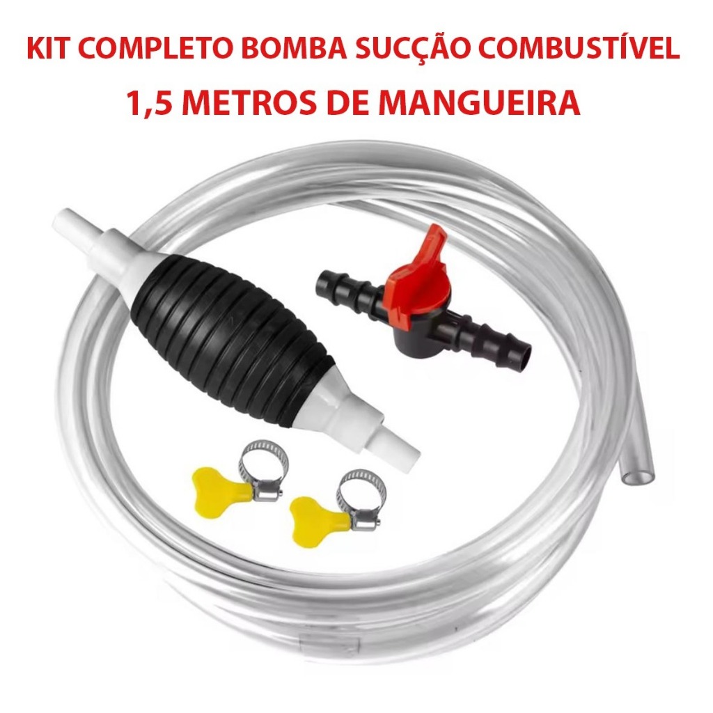 Bomba de Sucção Manual Transferência Gasolina, Etanol, Óleo, Água - Carro, Moto, Jetski
