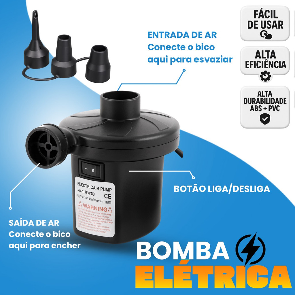 Bomba Elétrica Inflador Encher Colchão Boias Piscinas Bivolt Gurumania