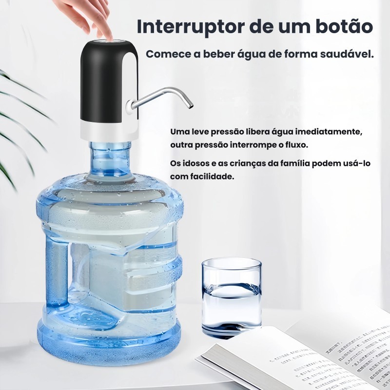 Esqueça o Peso de Virar o galão no antigo bebedouro apresentamos uma forma diferente e simples !!, onde você pode levar qualquer lugar e encaixar em qualquer modelo de galão tranquilamente. O bomba para galão de água elétrica recarregável é universal, que serve galões e garrafões de 5L, 10L, 20L e similares. Especificações técnicas: - Material do produto: plástico ABS + aço inoxidável 304 duro tubo + mangueira de silicone de grau alimentício. - Tamanho do produto: 6.9*6.9*12.3 cm - Peso aproximado: 188g - Modo de alimentação: fonte de alimentação USB - Comprimento da tubulação: 55 cm/21.65" - O comprimento do tubo rígido do efluente: 12 cm - Temperatura máxima da água 50º ( ITENS INCLUSOS ) - 01 Bomba elétrica - 01 Mangueira - 01 Cabo para recarregar 20cm - 01 Manual Especificações do Produto: - Bateria Forte: Dura até 8 galões de água de 20 Litros. Carga: 3 Horas. - Pode ser usada quando estiver carregando. - Uso Universal: Serve todos os tamanhos de galões e garrafões, 5L, 10L 20L