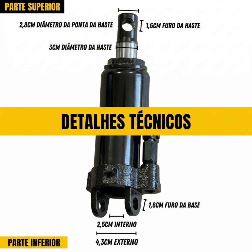 Bomba Hidráulica com Alavanca 8 Toneladas TNT — Preta ✅ Kit Completo de Reposição: Acompanha Bomba Hidráulica 8 Toneladas + Alavanca PARA QUE SERVE? Ideal para levantamento e elevação de cargas pesadas em construção civil, oficinas mecânicas, indústrias e manutenção em geral. Compatível com guinchos girafa (Analisar as medidas e ver se é compatível com o seu). ESPECIFICAÇÕES — BOMBA HIDRÁULICA: Capacidade: 8 Toneladas ▪Abertura da Haste: 53 cm ▪Altura Fechada: 65 cm ▪Diâmetro da Bomba: 7,5 cm ▪Diâmetro da Haste: 3 cm ▪Diâmetro da Ponta da Haste: 2,8 cm ▪Furo da Haste: 1,6 cm ▪Diâmetro Interno da Base: 2,5 cm ▪Diâmetro Externo da Base: 4,3 cm ▪Furo da Base: 1,6 cm ▪Peso: 7,6 kg ▪Cor: Preta ESPECIFICAÇÕES — ALAVANCA: ▪Comprimento: 46 cm ▪Espessura: 2 cm ▪Peso: 0,3 kg ▪Cor: Preta ⚠️ ATENÇÃO ▪ Confira os tamanhos da sua máquina para verificar se é compatível para reposição ▪ Não ultrapasse a capacidade máxima de 8 toneladas ▪ Utilize sempre em superfície firme e nivelada ▪ Produto de uso profissional e industrial
