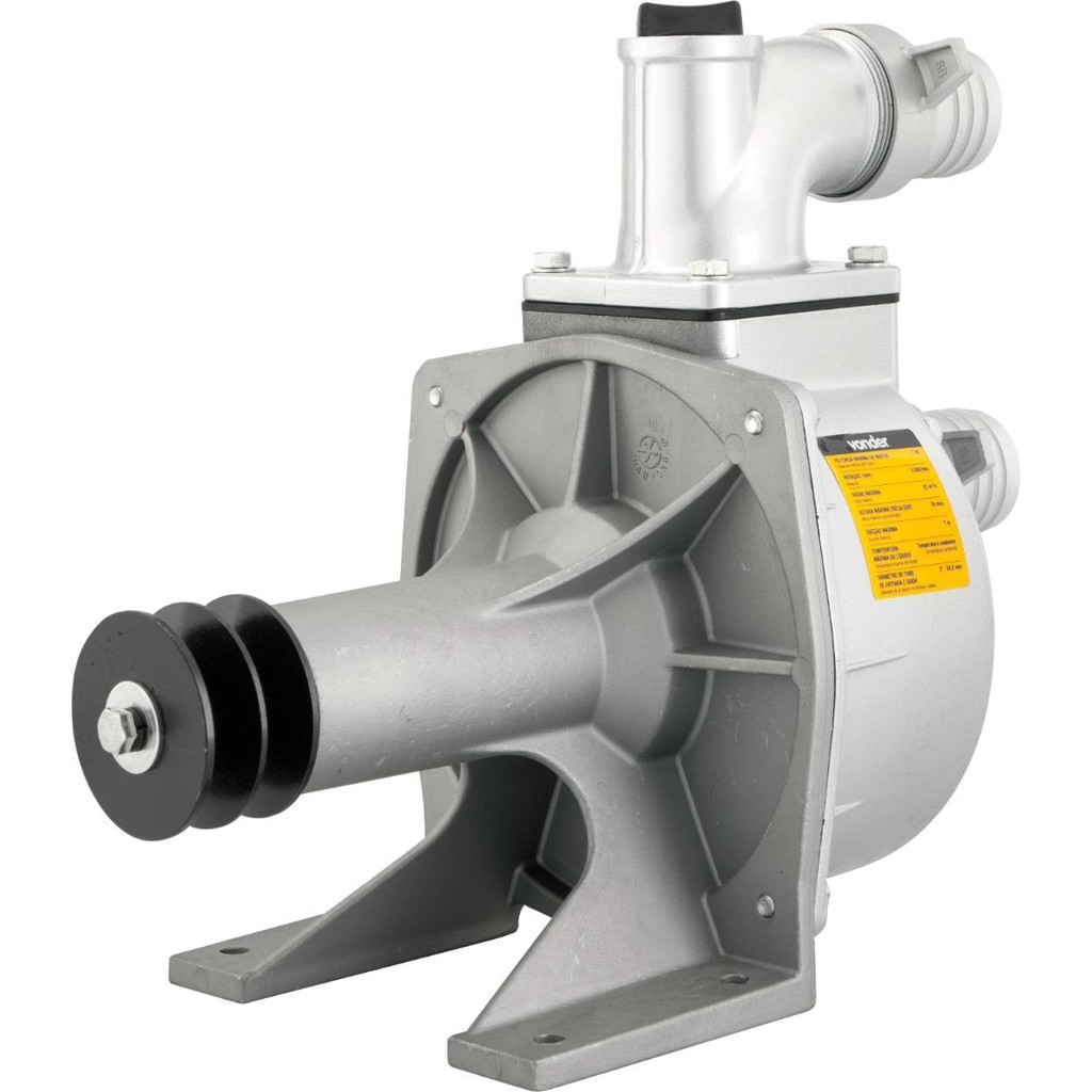Marca: Vonder Conteúdo da embalagem: 1 Bomba mancal. Acompanha: 1 filtro pescador, 1 conexão de entrada, 1 conexão de saída, 3 abraçadeiras e 1 polia de 2 canais tipo B. Destaques e diferenciais: Produto de fácil montagem e instalação. Conta com selo da bomba em porcelana. Acompanha filtro pescador contribui para que as impurezas não sejam sugadas pela bomba. Aplicações e dicas de uso: Indicada para acoplamento em motores a combustão (gasolina e diesel), com ou sem partida elétrica, ou motores elétricos (não acompanha motor), com potência mínima de 7 hp, respeitando sempre a capacidade da bomba. Produto indicado para bombeamento de água limpa. Detalhes Técnicos Potência mínima do motor: 7 hp Polia da bomba: 2 Canais B Diâmetro do tubo de entrada e saída: Entrada: 2"/ Saída: 2" Sucção máxima: 7 m Altura máxima (recalque): 36 m.c.a Vazão máxima: 25,0 m³/h Rotação (rpm): 3.600/min Temperatura máxima do líquido: Temperatura ambiente Tipo da correia: Tipo B (não acompanha) Massa aproximada (peso) (kg): 30,00 kg Garantia - E (CDC): Garantia legal: 90 dias + Garantia contratual: 3 meses
