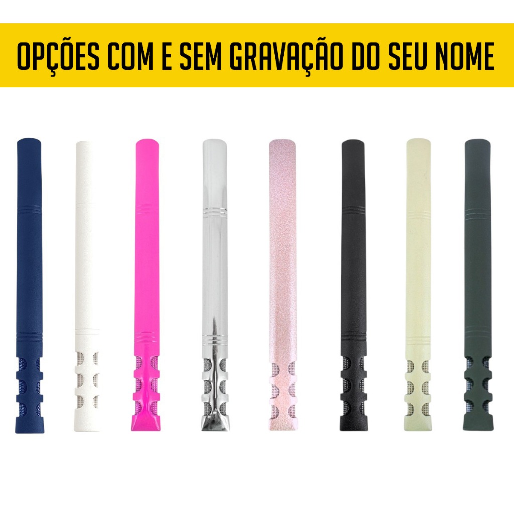 Bomba para Tereré Inox V6 com Telinha Diversas Cores com Escova de Limpeza