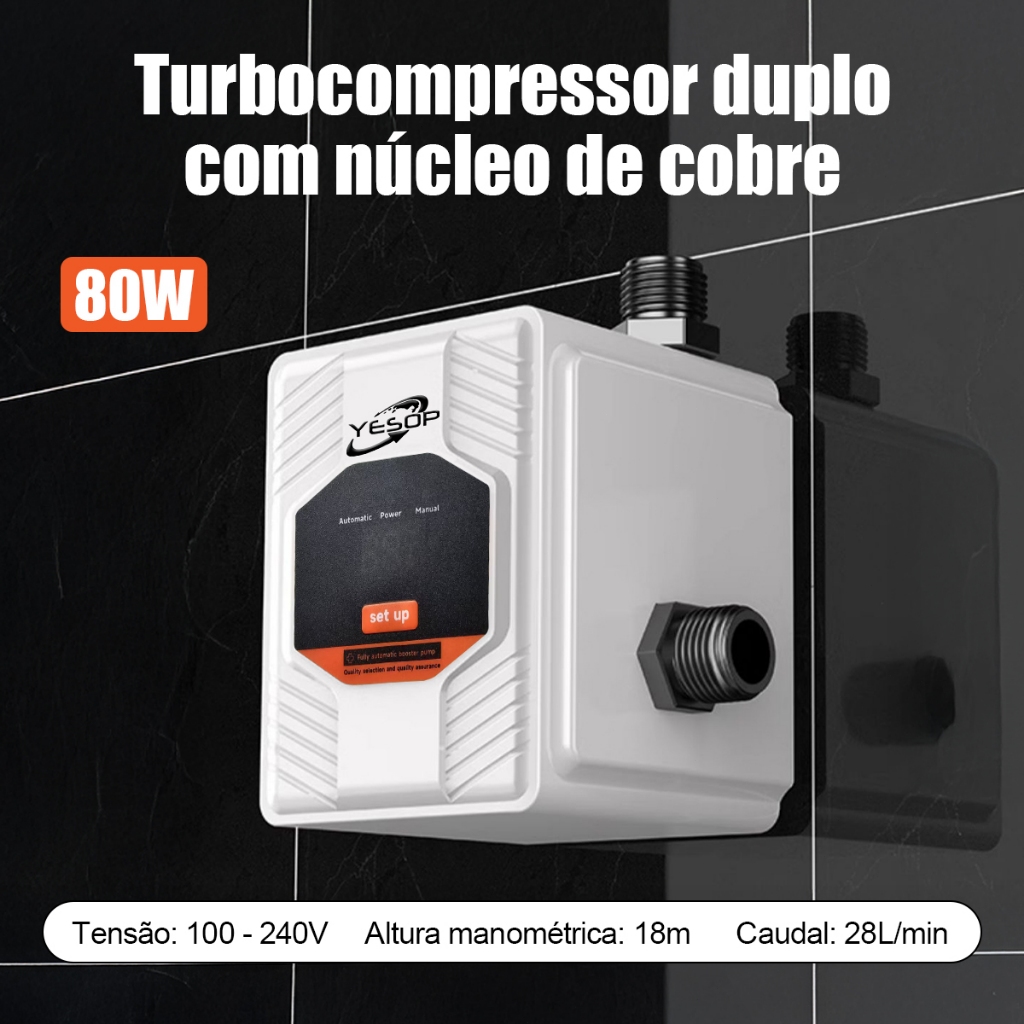 Bomba Pressurizadora Automática 80w para Chuveiro e Torneira Solução para Baixa Pressão de Água Instalação Fácil