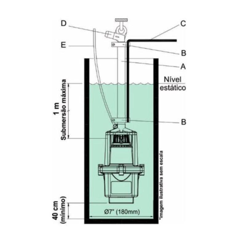 Bomba Submersa Vibratória 450W 900 5G ANAUGER Potência 450 Watts Elevação máxima 70 metros Produto com Maior vazão da linha Novo design Tecnologia de ponta Norma de Segurança e Instalação Aplicação: Bomba para poço com diâmetro superior a 7 polegadas (180 mm); ANAUGER 900 5G: maior vazão da linha ANAUGER. Possui saída de 1 polegada, o que reduz o atrito na mangueira, condição ideal para as vazões que a bomba proporciona. Excelente rendimento com maior vazões e atende às necessidades de água para uma residência; Utilizada no abastecimento doméstico, para pequenas irrigações e criação de animais. Especificações: Vazão máxima: 2.300 litros/hora Altura manométrica máxima: 70m (elevação) Temperatura máxima da água: 35ºC Bombeamento de água limpa Tensões: 127V – 220V – 254V Frequência: 60Hz (50Hz sob consulta) Saída ø1” polegada Características Técnicas Tipo: bomba submersa vibratória. Resistência a umidade: IP68 Isolação das bobinas: Classe H Proteção contra choque elétrico: Classe II Dimensões: altura = 290mm / ¿ 155mm Acompanha kit de instalação composto por 3 abraçadeiras e 1 curva suporte. Garantia:2 (dois) anos, conforme termo do certificado, que acompanha o produto. ABNT NBR NM IEC 60335-1:2010 ABNT NBR 5410:2004 Certificação: ABNT NBR ISO 9001:2008 * Selecionar opção de voltagem. * Imagens meramente ilustrativas.