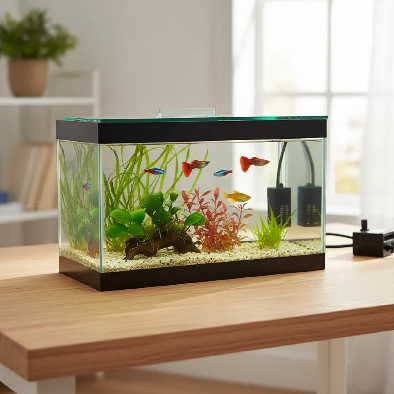 Bombinha + aquario 4 litros Retangular beteira 25x12x15 para peixes ornamnetal planta natural ou artificial bomba
