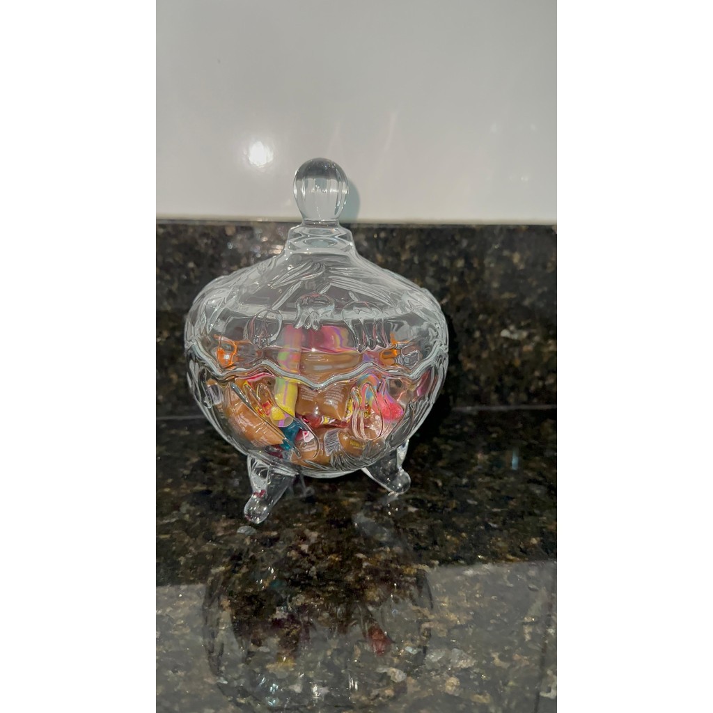 BOMBONIERE BALEIRO DE VIDRO COM PÉZINHO POTICHE PORTA DOCES PREMIUM