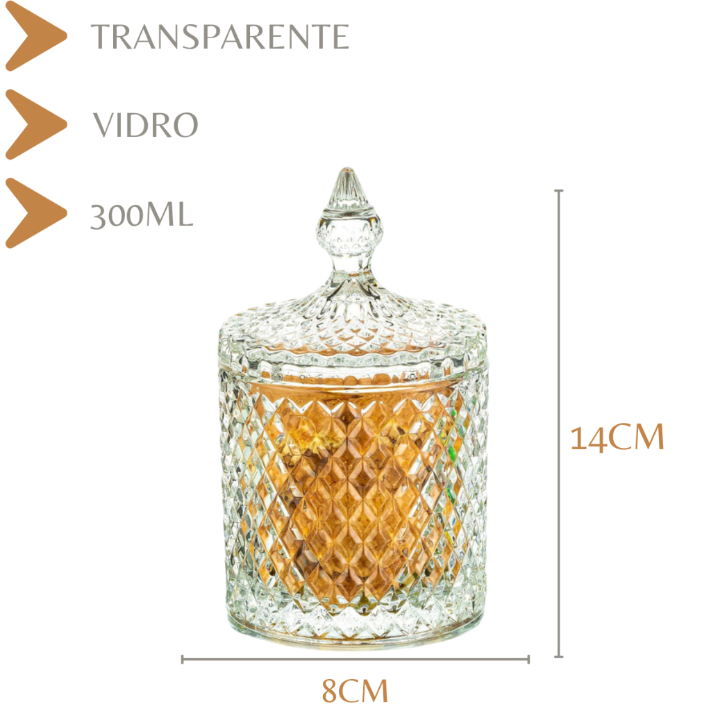 | Bomboniere Potiche De Vidro Bomboniere Cristal 300ml Kit 6 Unidades este produto | R$ 249,99 | — | 4.9/5 | 21 |