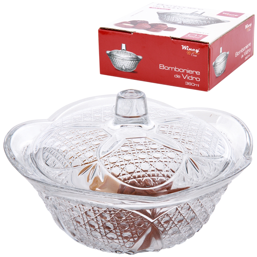 | Bomboniere Transparente De Vidro 360ML Texturizada Com Tampa este produto | R$ 18,90 | 37% | 4.8/5 | — |
