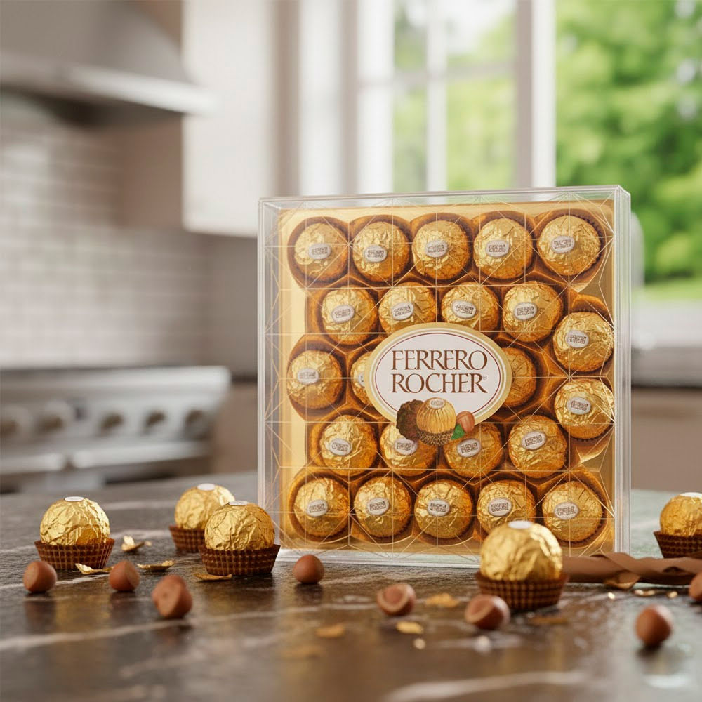 Bombons Ferrero Rocher Caixa Desfrute da sofisticação do Ferrero Rocher, o chocolate perfeito para presentear ou compartilhar. Esta caixa com 24 unidades oferece uma combinação irresistível de chocola