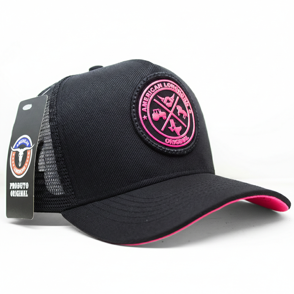 - Produto Original American Longhorn; - Modelo Trucker Americano; - Produzido em brim e microfibra; - Aplique na arte frontal, traseira bordada; - Viés original American Longhorn; - Aba curva com 6 costuras, carneira soft; - Regulagem traseira em Snapback; - Parte traseira em telinha; - Bone Adulto, atende do 50 ao 62; - Produto ORIGINAL.