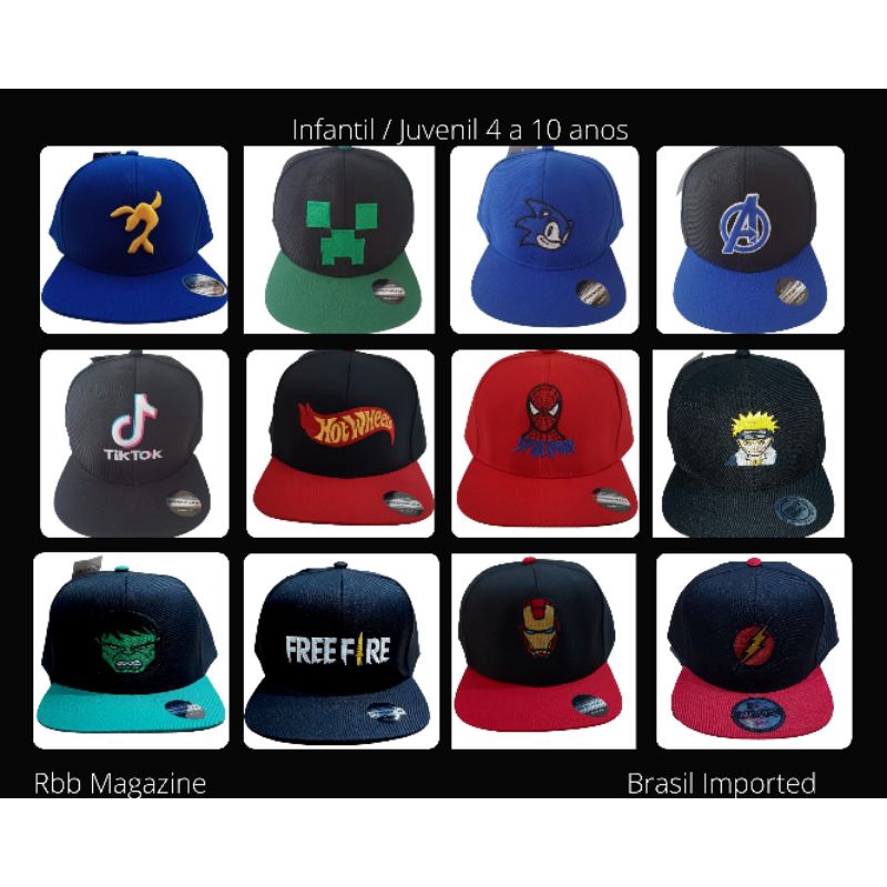 Boné Bordado infantojuvenil diversos personagens, encontre aqui o seu favorito. Homem Aranha, Homem de ferro, Batman, Capitão América, Huck, Flash, Naruto, Akatsuki, Now United, Freefire, Fortinite, Aventureira vermelha entre outros... Todos os Bonés são ajustáveis. Tamanho: 50cm a 55cm Ideal para crianças de 4 a 9/10 anos Envio em até 24 horas úteis após confirmação do pagamento. Não perca essa promoção e peça já o seu! Ficou com Dúvida? Pode nos chamar no chat. Todas as fotos são nossas, tiradas por nós e reais do produto.