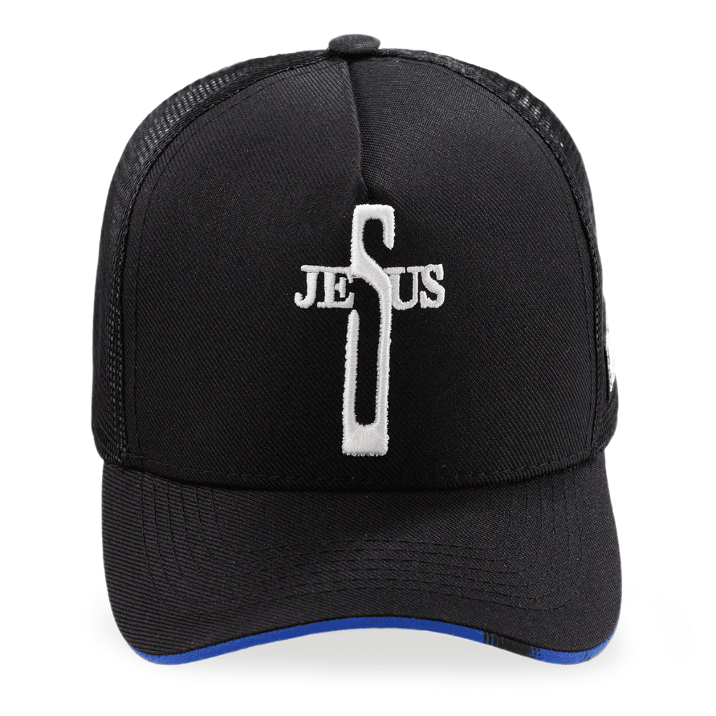 Boné Country Cruz de Jesus Preto Azul Telinha Trucker Masculino Feminino Pampa´s Country