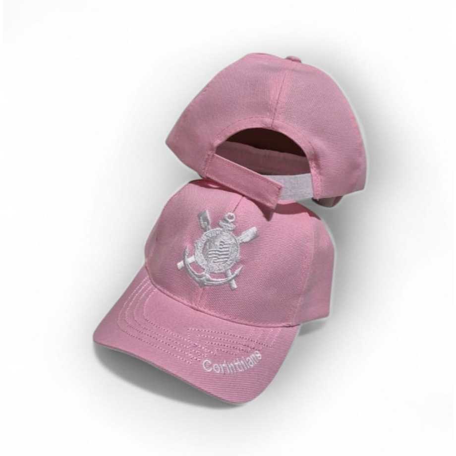 BONÉ DO CORINTHIANS COR ROSA BORDADO ABA CURVA