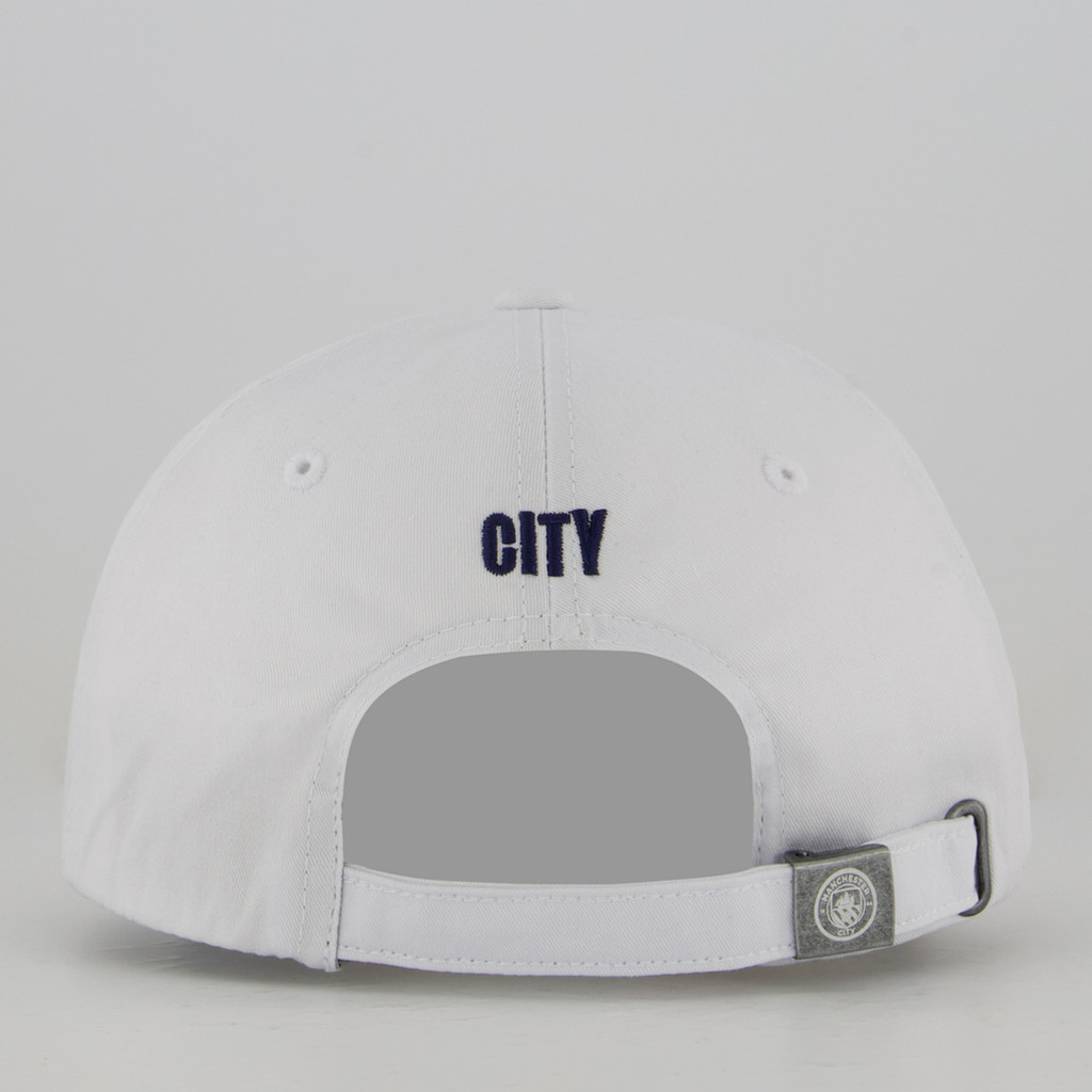 Composição: 100% Algodão Cor predominante: Branco Ajuste: Fivela de metal Peso aproximado: 90 g Clube: Manchester City Indicado para: Casual Profundidade: 17 cm Escudo: Bordado Origem: Nacional Gênero: Unissex Aba: Curva Tamanho único