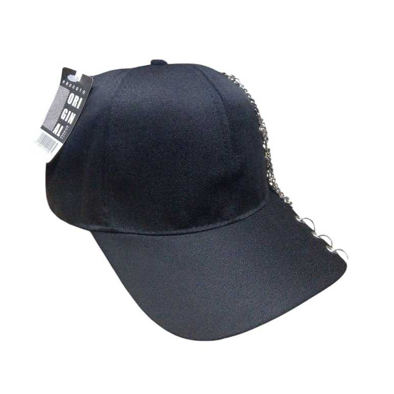 BONÉ PRETO KPOP COM ARGOLA E CORRENTE ABA CURVADA