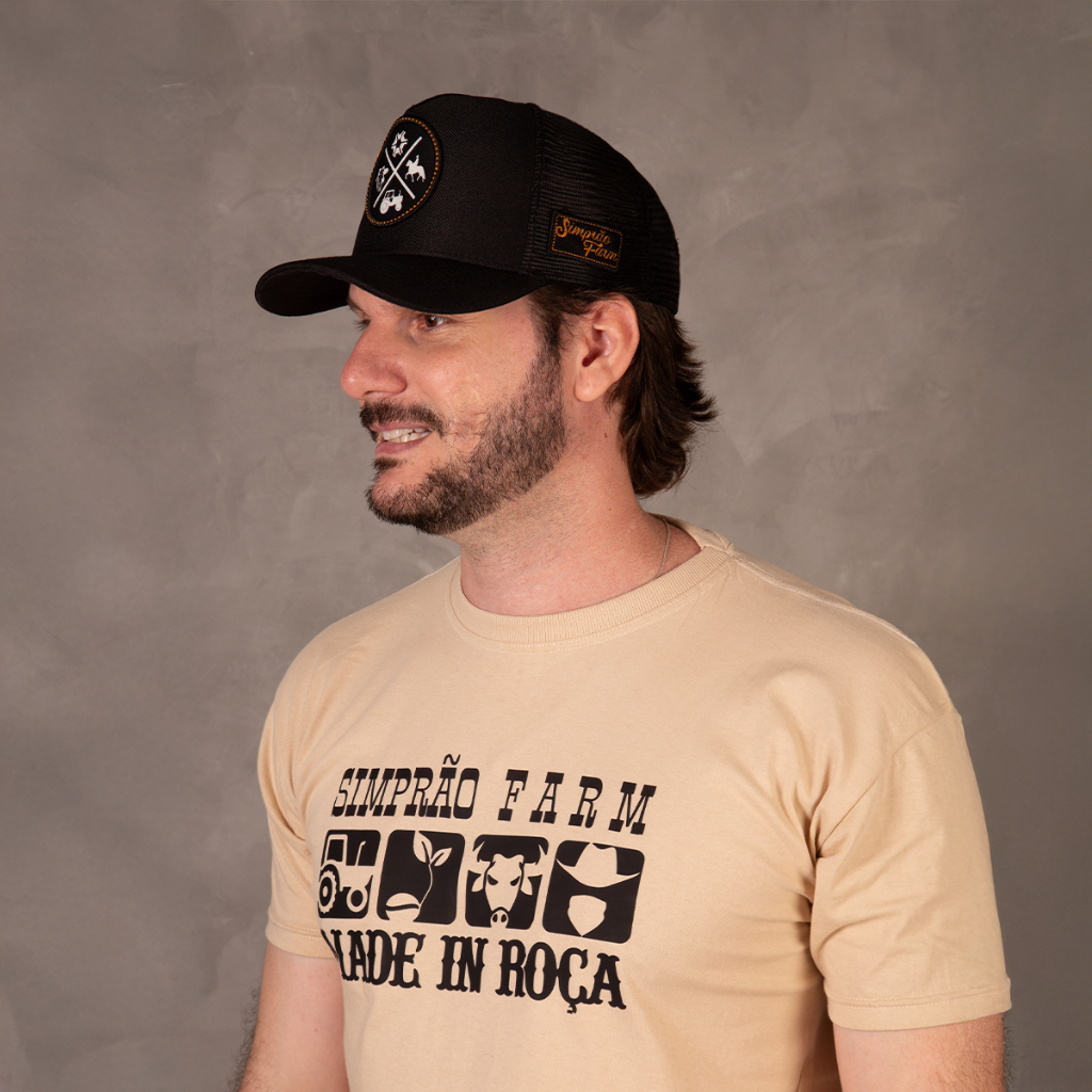 Boné Trucker Country Masculino Agro Caipira Aba Curva Telinha Redinha Simprão Farm Premium