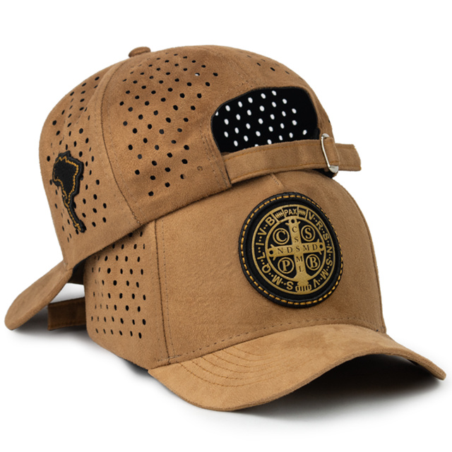 Boné Trucker Medalhão De São Bento Furadinho Premium A Laser Aba Curva Em Camurça Redinha Masculino Original