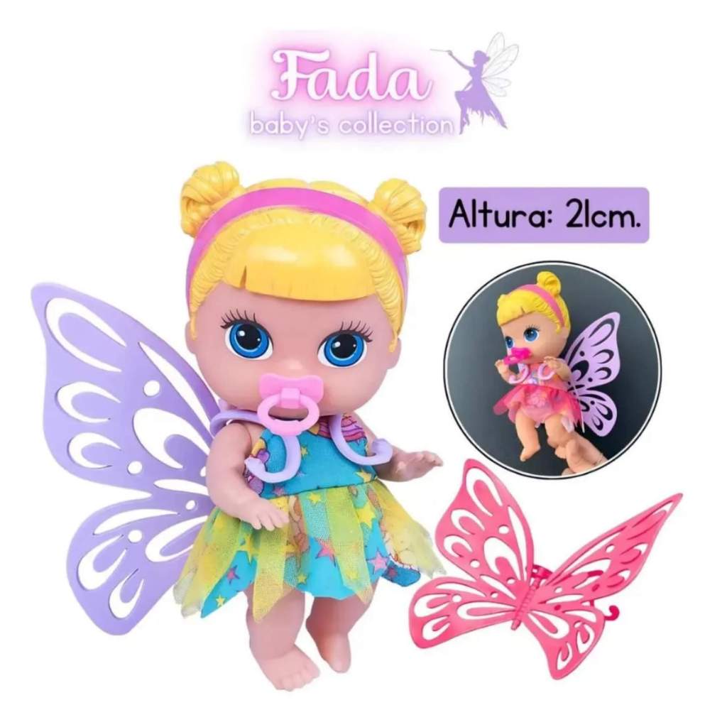 | Boneca Babys Collection Mini Fada Morena Com Chupetinha SUPER TOYS ... | R$ 35,83 | 17% | 5.0/5 | — |