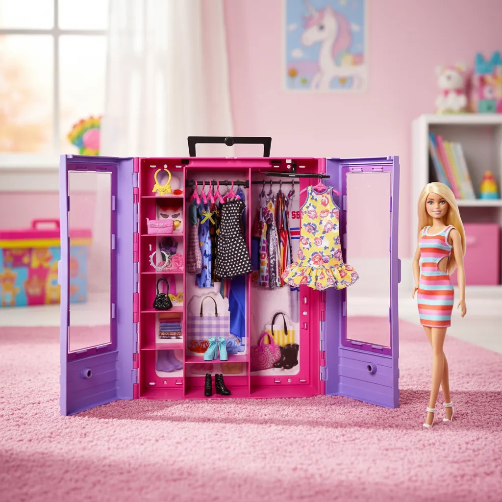 Novo Closet de Luxo da Barbie com Boneca Mattel O novo Closet da Barbieinclui a boneca Barbie, roupas e acessórios e tem estilo por dentro e por fora! OCloset de Luxo da Barbie com Bonecanão é apenas projetado para ser super portátil, ele também inclui uma boneca Barbie, roupas e acessórios para criar looks diferentes e muitas histórias. Um mundo de possibilidades! Decorado com o estilo exclusivo da Barbie, o armárioroxo édecorado com portas duplasclaras para um vislumbre do guarda-roupa da boneca Barbie! O espaço deprateleira armazena e exibe acessórios, e um rack desdobrável mantém a moda para a diversão! A boneca Barbieusa vestido listrado e sapatos e vem com roupas e acessórios modernos.Dois vestidos são perfeitos para o dia ou para a noite com estampas modernas e cores populares junto com dois pares de sapatos, dois colares e duas bolsas! Uma alça de transporte facilita guardar ou levar para viagem. Vantagens * O armário portátil está pronto para viajar, em qualquer lugar, para qualquer ocasião. * Inclui seis cabides para pendurar várias roupinhas da Barbie. * Um rack dobrável é usado para pendurar roupas e é útil para mudanças de estilo de vestir. * A boneca Barbieusa um vestido listrado e tem dois vestidos adicionais para trocar de roupa. * Inclui três pares de sapatos, dois colares e duas bolsas para criar looks diferentes em um instante!